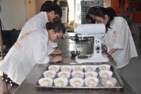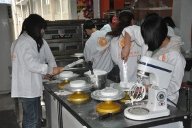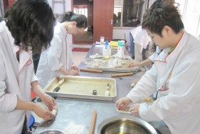 学员们正在练习面包制作