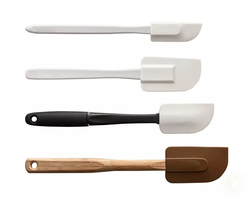 刮刀的不同的材质决定其软硬度和弧度,一般来说曲奇面糊的刮刀需要稍微硬一点,而蛋糕甜点类的则需要柔软一点。